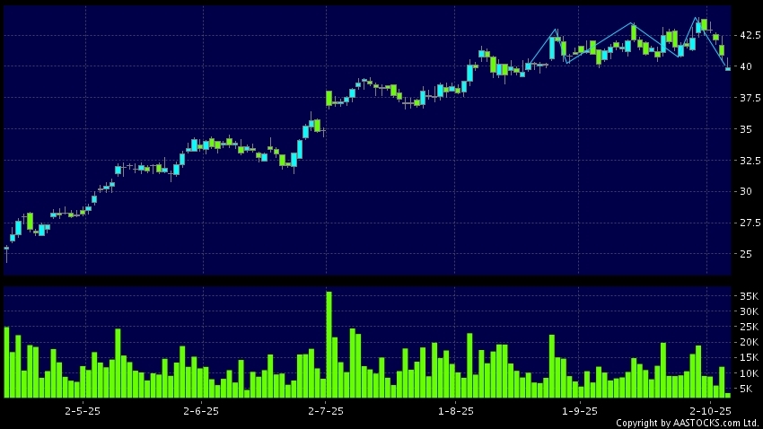 Disclaimer:The information, financial market data, quotes, charts, statistics and / or various technical analysis indicators are automatically generated based on the analyses and interpretations of publicly available information and should be used as references only at your own discretion. Such automatically generated content does not reflect the views or opinions of AASTOCKS.com Limited nor does AASTOCKS.com Limited make any guarantees to their accuracy, completeness, timeliness or correctness. You are advised to consult independent professional advice to verify pricing information or to obtain more detailed market information. Any uses of information or trades executed following the said automatically generated content are taken at your own risk for your own account.