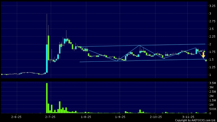 Disclaimer:The information, financial market data, quotes, charts, statistics and / or various technical analysis indicators are automatically generated based on the analyses and interpretations of publicly available information and should be used as references only at your own discretion. Such automatically generated content does not reflect the views or opinions of AASTOCKS.com Limited nor does AASTOCKS.com Limited make any guarantees to their accuracy, completeness, timeliness or correctness. You are advised to consult independent professional advice to verify pricing information or to obtain more detailed market information. Any uses of information or trades executed following the said automatically generated content are taken at your own risk for your own account.