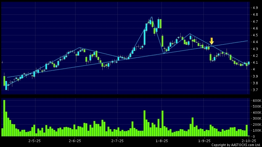 Head Shoulders top is a typical bearish signal, when stock price breaks the supportive level, downtrend would possibly start.(HK stocks quote is delayed for at least 15 mins.Short Selling Data as at 2025-10-08 16:25.)