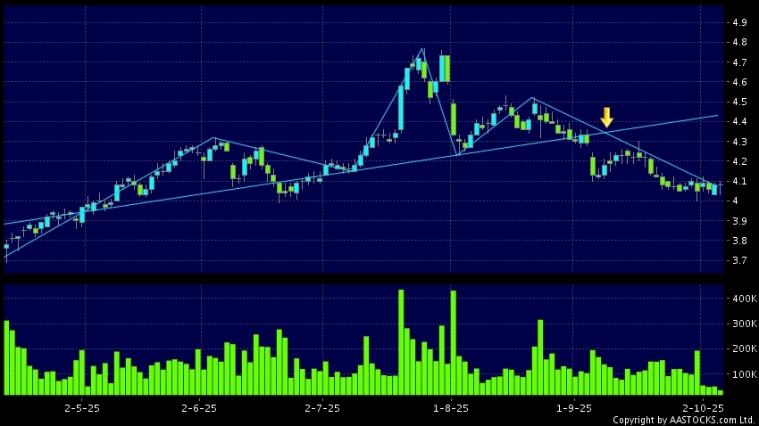 Head Shoulders top is a typical bearish signal, when stock price breaks the supportive level, downtrend would possibly start.(HK stocks quote is delayed for at least 15 mins.Short Selling Data as at 2025-10-08 16:25.)