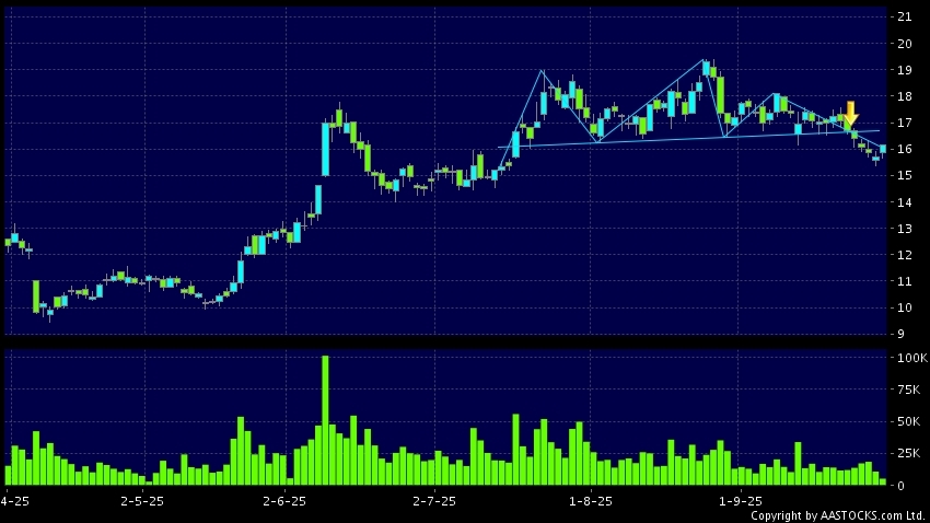 Head Shoulders top is a typical bearish signal, when stock price breaks the supportive level, downtrend would possibly start.(HK stocks quote is delayed for at least 15 mins.Short Selling Data as at 2025-10-08 16:25.)
