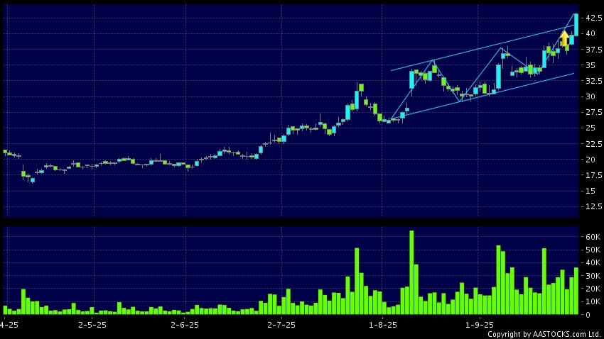 GANFENGLITHIUM(01772.HK) appears an upside range breakout. Last printed at 43.140; rose 8.665%; on volume of 36.26M shares and turnover of $1.53BRecent PerformanceIn 3 days: +13.28...