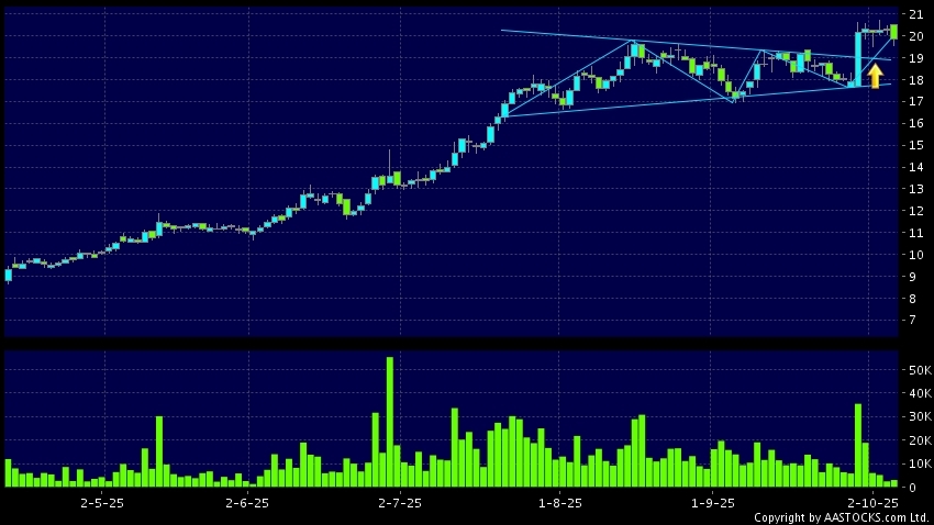 Triangle Breakout means the volatility of price movement is decreasing, stock price finally broke the top of triangle. An upward trend will start.(HK stocks quote is delayed for at least 15 mins.Short Selling Data as at 2025-10-08 12:25.)