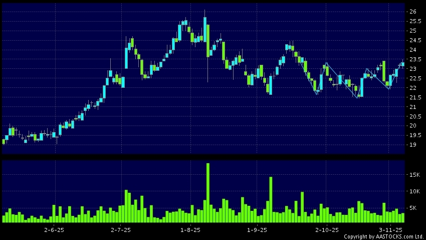 Disclaimer:The information, financial market data, quotes, charts, statistics and / or various technical analysis indicators are automatically generated based on the analyses and interpretations of publicly available information and should be used as references only at your own discretion. Such automatically generated content does not reflect the views or opinions of AASTOCKS.com Limited nor does AASTOCKS.com Limited make any guarantees to their accuracy, completeness, timeliness or correctness. You are advised to consult independent professional advice to verify pricing information or to obtain more detailed market information. Any uses of information or trades executed following the said automatically generated content are taken at your own risk for your own account.