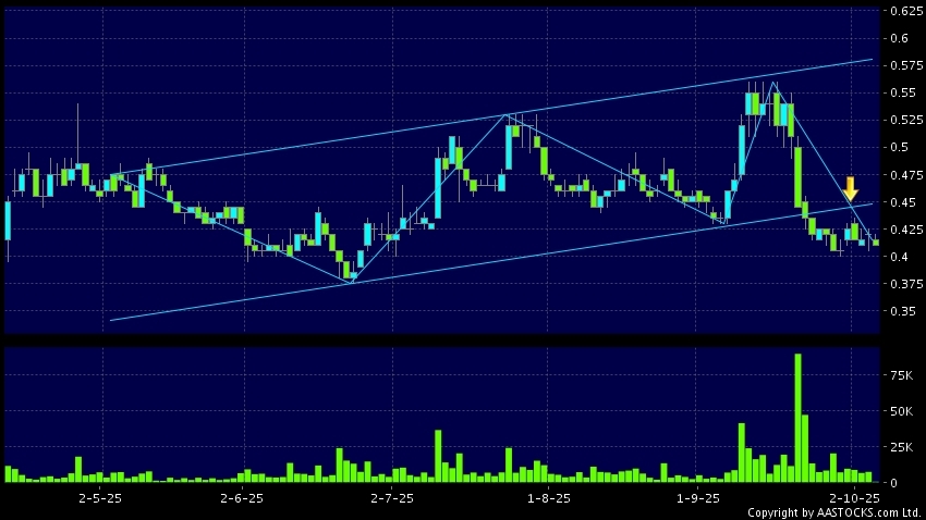 AGILE GROUP(03383.HK)  -0.005 (-1.190%)   appears a downside range breakout. Last printed at 0.410; fell 2.381%; on volume of 616.00K shares and turnover of $255.12K