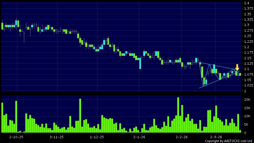 Triangle Breakout means the volatility of price movement is decreasing, stock price finally broke the bottom of triangle. A downward trend will start.(HK stocks quote is delayed for at least 15 mins.Short Selling Data as at 2026-03-31 16:25.)