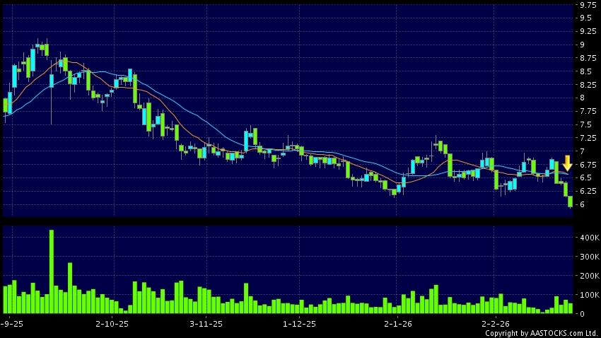 死亡交叉是一个利淡信号,指股价的短期移动平均线跌穿长期移动平均线,例如50天线跌穿250天线,在图表上构成交叉的形状。股价通常会下跌形成一个下降趋势,技术走势偏软。(港股报价延迟最少十五分钟。沽空资料截至 2026-02-27 16:25。)