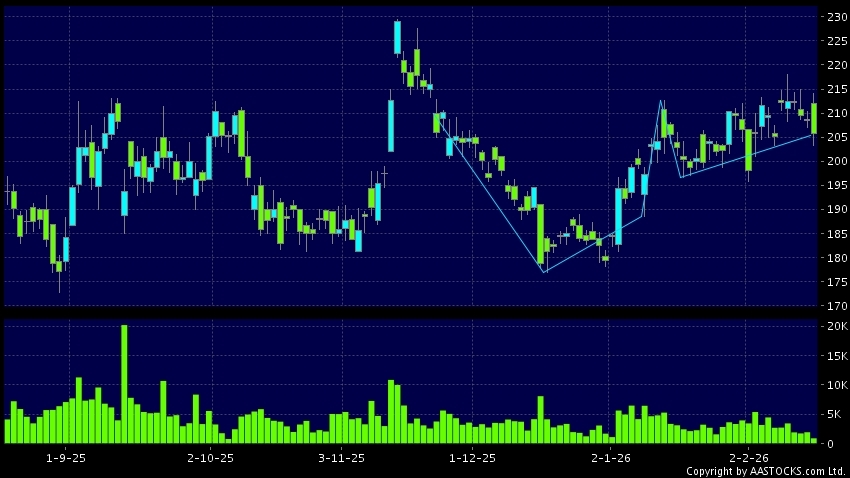 免责声明:以上金融市场数据丶报价丶图表 及/或各种技术分析指标乃根据公开资料分析和演释自动生成的,仅作参考使用。此类自动生成的内容并不代表AASTOCKS.com Limited的立场。AASTOCKS.com Limited并不保证其准确性丶完整性丶实时性或者正确性。阁下应谘询独立专业意见,以核实定价资料或获取更详细的市场信息及须为所有跟随此类自动生成的内容执行的交易或使用该内容负责。