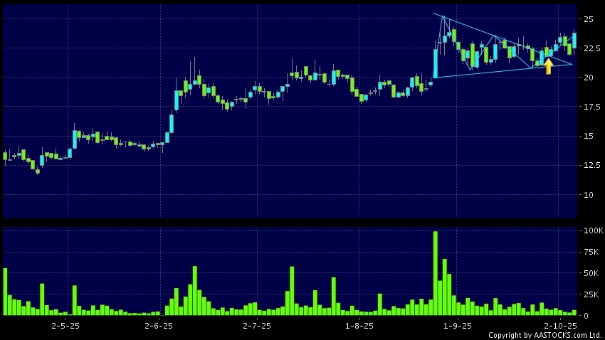 《AI》金力永磁(06680.HK)出现「三角突破」技术图表形态