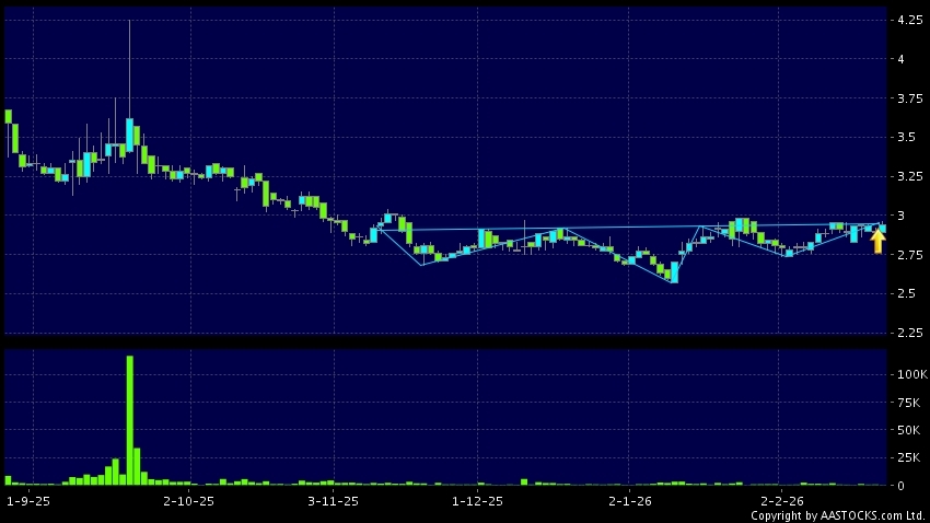头肩底是典型的利好讯号,当股价升穿阻力线时,升势确认股价将持续上升,技术走势向好。(港股报价延迟最少十五分钟。沽空资料截至 2026-03-26 16:25。)