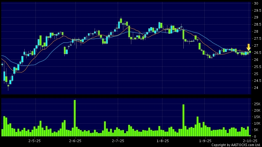 免責聲明:以上金融市場數據、報價、圖表 及/或各種技術分析指標乃根據公開資料分析和演釋自動生成的,僅作參考使用。此類自動生成的內容並不代表AASTOCKS.com Limited的立場。AASTOCKS.com Limited並不保證其準確性、完整性、實時性或者正確性。閣下應諮詢獨立專業意見,以核實定價資料或獲取更詳細的市場信息及須為所有跟隨此類自動生成的內容執行的交易或使用該內容負責。