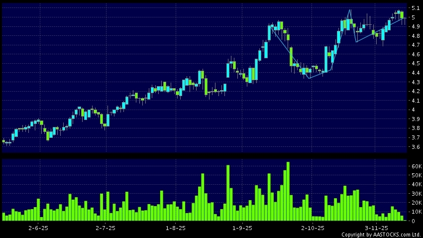 免責聲明:以上金融市場數據、報價、圖表 及/或各種技術分析指標乃根據公開資料分析和演釋自動生成的,僅作參考使用。此類自動生成的內容並不代表AASTOCKS.com Limited的立場。AASTOCKS.com Limited並不保證其準確性、完整性、實時性或者正確性。閣下應諮詢獨立專業意見,以核實定價資料或獲取更詳細的市場信息及須為所有跟隨此類自動生成的內容執行的交易或使用該內容負責。