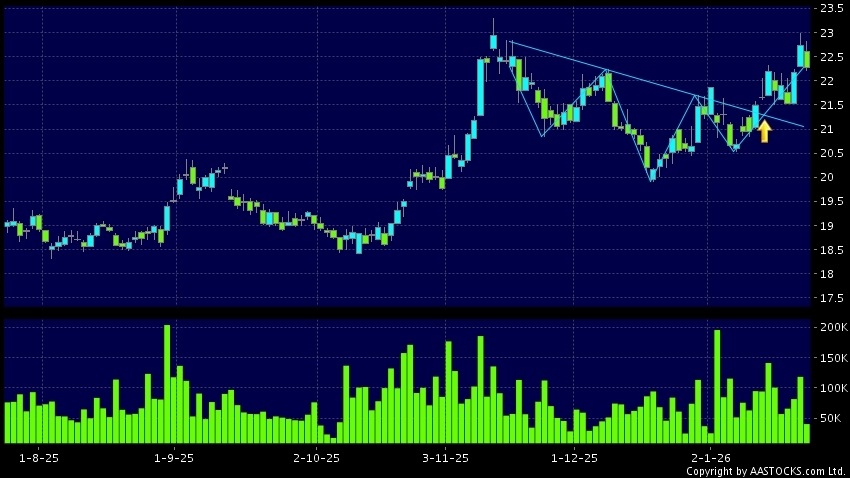 頭肩底是典型的利好訊號,當股價升穿阻力線時,升勢確認股價將持續上升,技術走勢向好。(港股報價延遲最少十五分鐘。沽空資料截至 2026-01-23 16:25。)