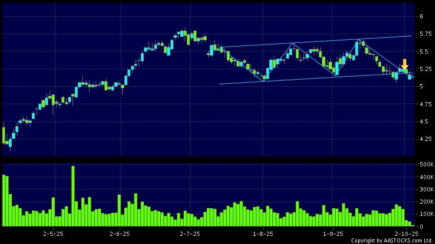 區域突破指股價在過去的一段時間只在一個範圍在內活動,然後股價下跌作出突破,跌穿區域的底部,技術走勢偏軟。(港股報價延遲最少十五分鐘。沽空資料截至 2025-10-08 12:25。)