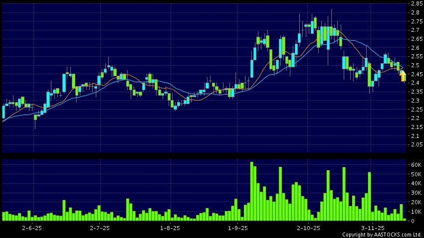免責聲明:以上金融市場數據、報價、圖表 及/或各種技術分析指標乃根據公開資料分析和演釋自動生成的,僅作參考使用。此類自動生成的內容並不代表AASTOCKS.com Limited的立場。AASTOCKS.com Limited並不保證其準確性、完整性、實時性或者正確性。閣下應諮詢獨立專業意見,以核實定價資料或獲取更詳細的市場信息及須為所有跟隨此類自動生成的內容執行的交易或使用該內容負責。