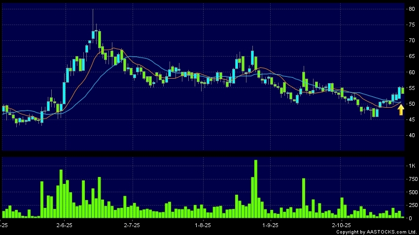 黃金交叉是一個利好訊號,指股價的短期移動平均線升穿長期移動平均線,例如50天線升穿250天線,在圖表上構成交叉的形狀。股價通常會上升形成一個上升趨勢,技術走勢向好。(港股報價延遲最少十五分鐘。)