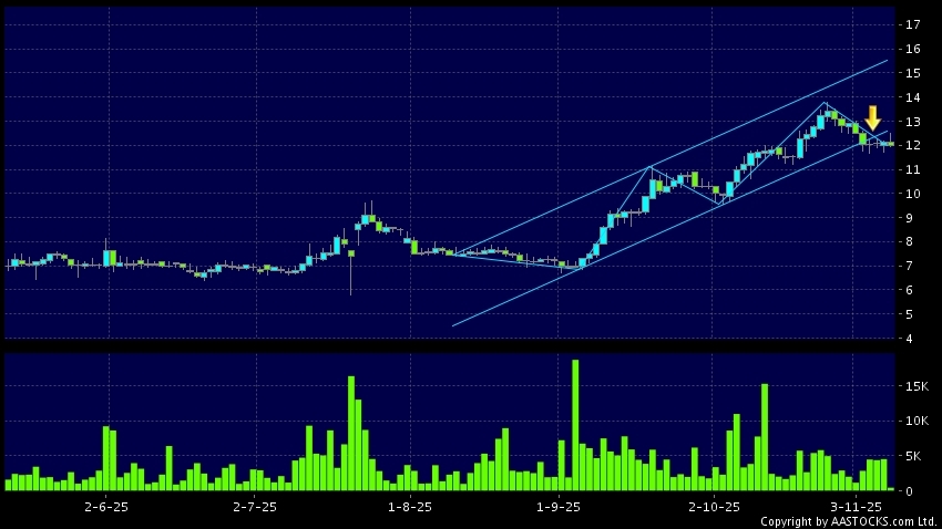 區域突破指股價在過去的一段時間只在一個範圍在內活動,然後股價下跌作出突破,跌穿區域的底部,技術走勢偏軟。(港股報價延遲最少十五分鐘。沽空資料截至 2025-11-17 12:25。)
