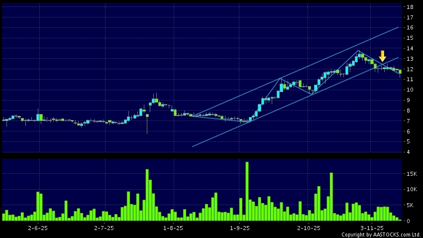 區域突破指股價在過去的一段時間只在一個範圍在內活動,然後股價下跌作出突破,跌穿區域的底部,技術走勢偏軟。(港股報價延遲最少十五分鐘。沽空資料截至 2025-11-17 12:25。)