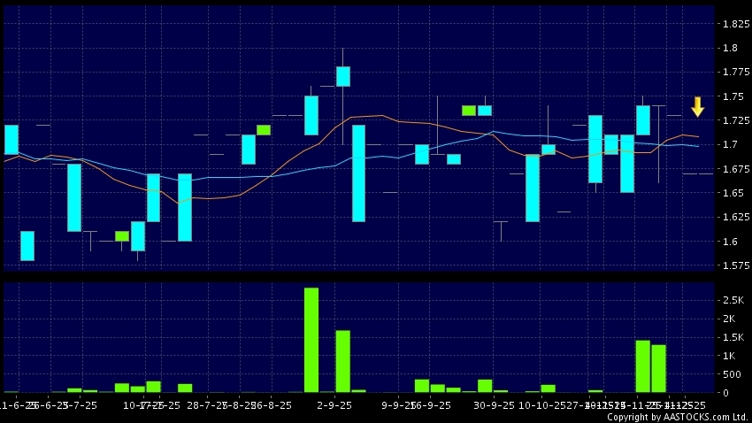免責聲明:以上金融市場數據、報價、圖表 及/或各種技術分析指標乃根據公開資料分析和演釋自動生成的,僅作參考使用。此類自動生成的內容並不代表AASTOCKS.com Limited的立場。AASTOCKS.com Limited並不保證其準確性、完整性、實時性或者正確性。閣下應諮詢獨立專業意見,以核實定價資料或獲取更詳細的市場信息及須為所有跟隨此類自動生成的內容執行的交易或使用該內容負責。